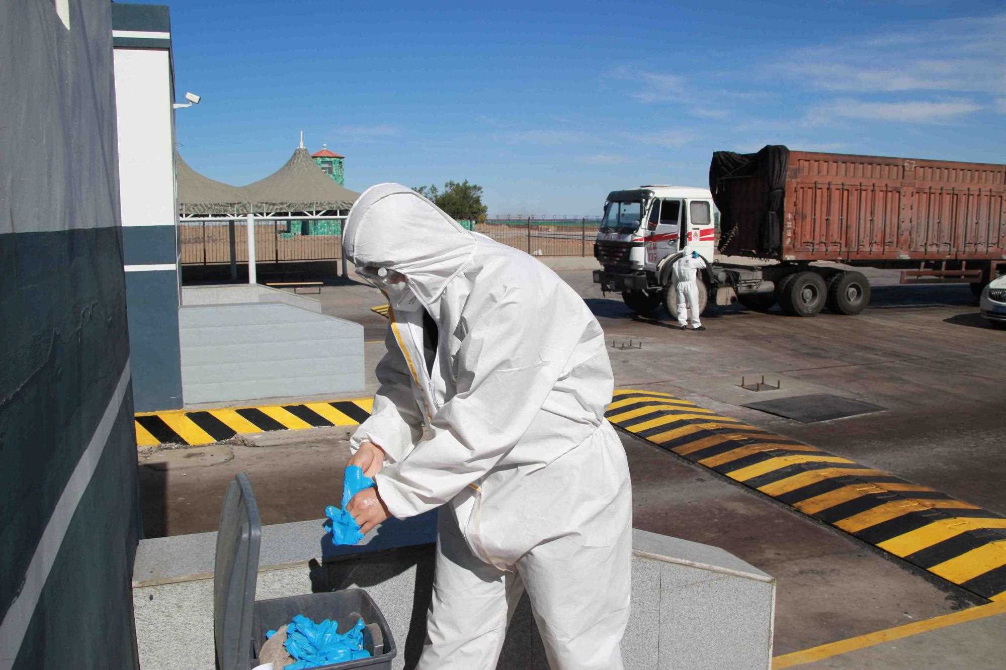 6月11日,內(nèi)蒙古自治區(qū)阿拉善盟額濟(jì)納旗策口岸地氣溫持續(xù)升高,策克口岸距離額濟(jì)納旗近70余公里,地處戈壁深處,全年干旱少雨干燥的氣候、持續(xù)增長(zhǎng)的氣溫,為抗擊疫情、出入境查驗(yàn)等工作都帶來(lái)了不小的影響。