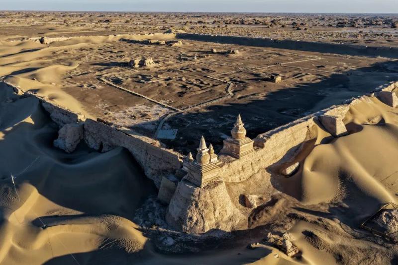 黑水城遺址(無人機(jī)照片)。新華社記者 連振 攝