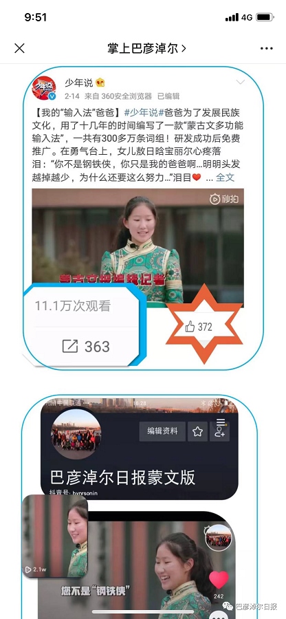 目前巴彥淖爾日報社已經(jīng)形成“報、網(wǎng)、微、端、視”30多個平臺的全媒體矩陣,通過本土化的新聞作品,吸引了350萬粉絲關(guān)注巴彥淖爾日報社各媒體平臺,以優(yōu)質(zhì)原創(chuàng)內(nèi)容贏得用戶和市場尊敬。