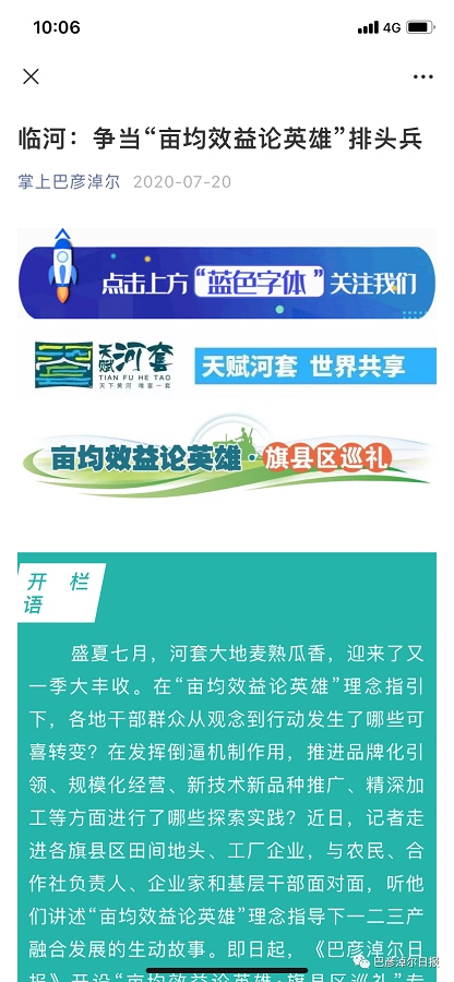 實施策采一體化以后,先后整體策劃推出了深度報道《河套——胡煥庸線西北的一個奇跡》,重磅述評《將畝均效益論英雄理念貫徹到底》《烏梁素海的前世今生》《塞上江南換新顏》等作品,從全新的角度解讀巴彥淖爾高質(zhì)量發(fā)展,被新華網(wǎng)、人民網(wǎng)、今日頭條廣泛轉(zhuǎn)載,廣受好評。重磅報道《Hello,我是金草胡羊,我回家鄉(xiāng)了!》《24小時做一根面條》《河套小麥,麩皮都能吃》等讓讀者耳目一新,受到自治區(qū)黨委宣傳部的充分肯定。