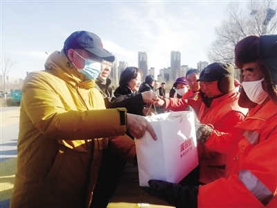 裴永志告訴呼和浩特晚報(bào)記者:“我們夫妻經(jīng)營著一家民營企業(yè),2017年冬季的一天,我出差辦事,當(dāng)天早上7點(diǎn)多就趕到了機(jī)場(chǎng),天氣非常寒冷。到了機(jī)場(chǎng),看到有幾名環(huán)衛(wèi)工人正在打掃路邊的衛(wèi)生,其中一名年齡較大的環(huán)衛(wèi)工人摘下手套拾撿路邊的煙頭等垃圾。我當(dāng)時(shí)非常感動(dòng),覺得環(huán)衛(wèi)工人平凡而又偉大,于是,就想著為他們做點(diǎn)什么。出差回來后,我把想法告訴了妻子,沒想到妻子也非常支持,最終,我們決定為環(huán)衛(wèi)工人捐贈(zèng)棉衣。之后便與賽罕區(qū)環(huán)衛(wèi)局的工作人員進(jìn)行對(duì)接。當(dāng)年,我們自籌了15萬元,購買了206件棉衣,捐贈(zèng)給了環(huán)衛(wèi)工人?!?/p>