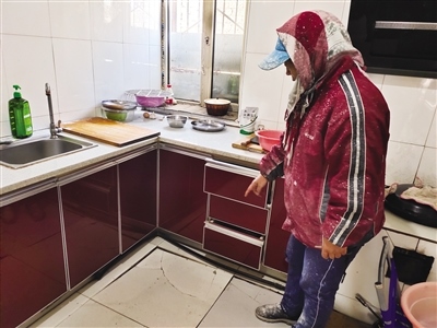 10月28日上午,記者再次來到阿木奈營村回訪,馬美蘭家和趙秀平家的暖氣片均已安裝,供熱良好。仍然有部分村民家的暖氣不熱,部分村民屋后的架空暖氣管道接口處漏水。村民馮翠梅苦惱地告訴記者,施工隊(duì)在她家房子后面安裝暖氣管道時挖開坑,下雨后坑內(nèi)積水滲漏到地基,導(dǎo)致她家廚房地基下沉。記者看到,下沉部分的大理石板已破碎,廚柜也有下沉。