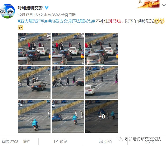 為實現(xiàn)斑馬線交通安全“三提升一下降”(機(jī)動車禮讓斑馬線和行人、非機(jī)動車守法意識明顯提升,輿論宣傳倡導(dǎo)“機(jī)動車禮讓斑馬線”的深度與廣度不斷提升,群眾對城市交通管理的滿意度顯著提升;因不禮讓斑馬線導(dǎo)致人員傷亡的交通事故發(fā)案率大幅下降)的目標(biāo),按照交管支隊關(guān)于開展集中整治機(jī)動車不禮讓斑馬線行動方案的統(tǒng)一部署,支隊指揮中心運用高科技手段,利用高清視頻探頭抓拍機(jī)動車不禮讓斑馬線等交通違法行為,并錄入道路交通管理綜合應(yīng)用平臺。自2020年12月12日至12月31日,利用大屏監(jiān)控設(shè)備抓拍260條,錄入系統(tǒng)并予以曝光。