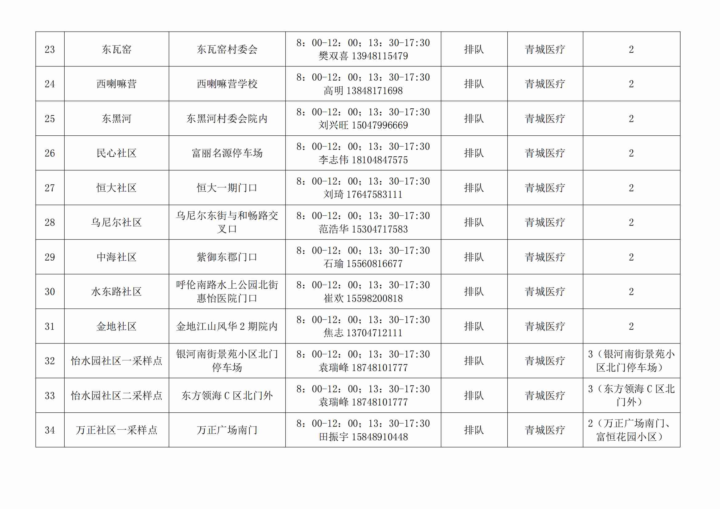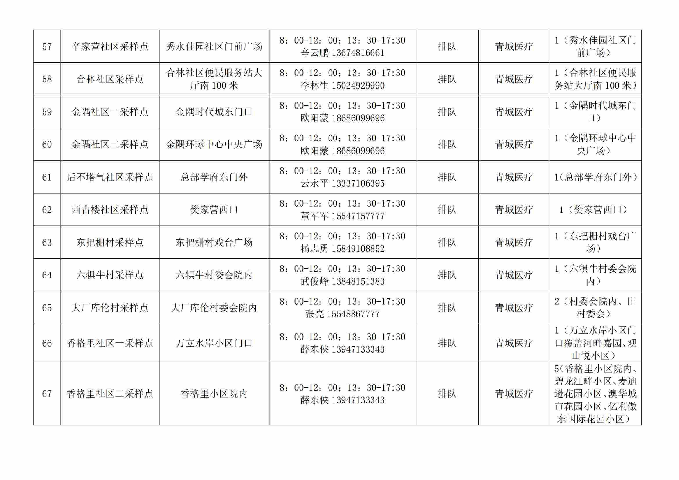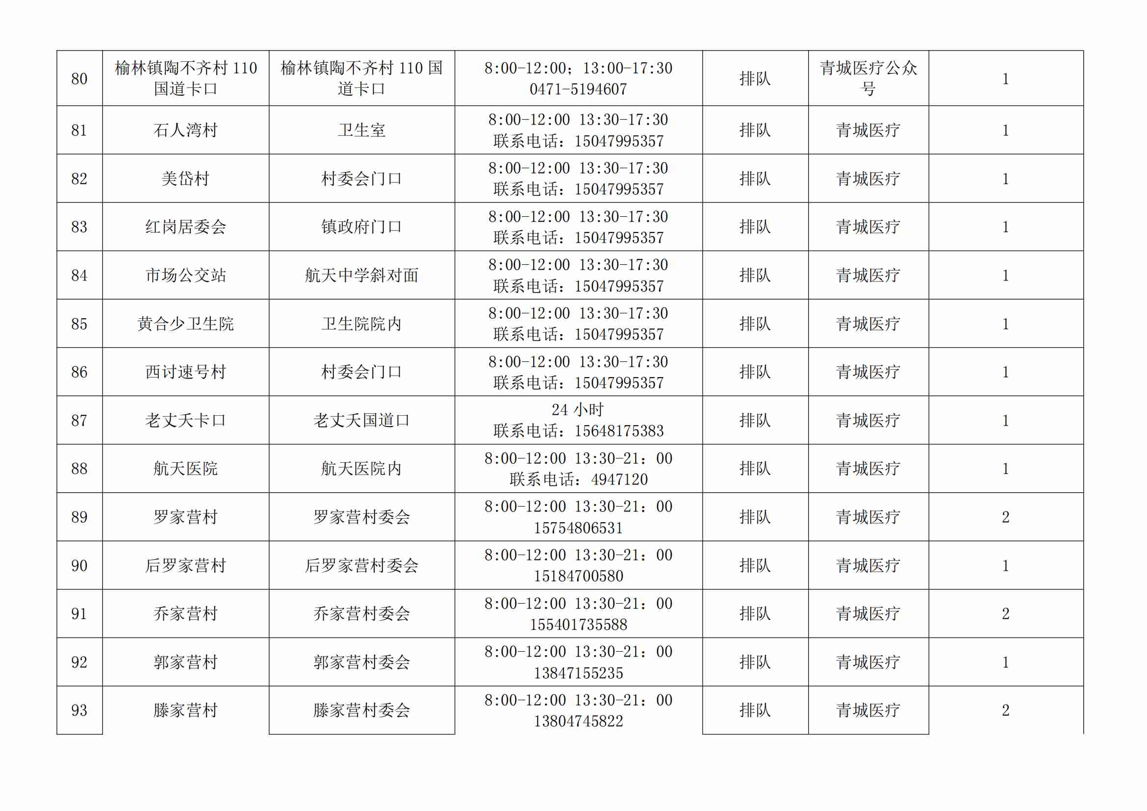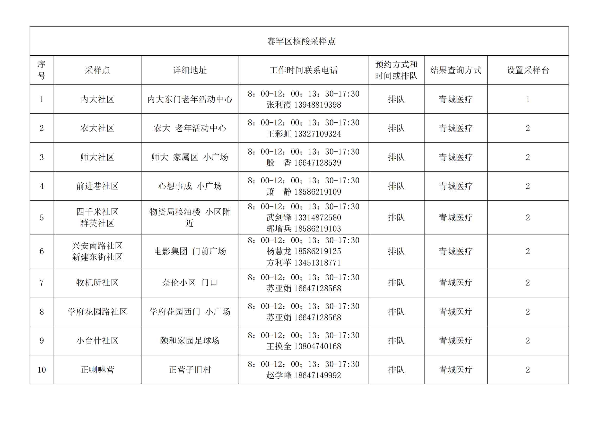 根據(jù)全市核酸檢測(cè)政策的調(diào)整,為滿足市民就醫(yī)、出行、工作等核酸檢測(cè)需求,賽罕區(qū)開放160個(gè)便民核酸采樣點(diǎn)(詳見附表),廣大市民可就近選擇,核酸結(jié)果從青城碼查詢。