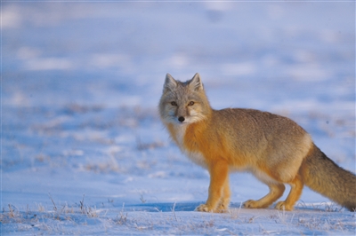 沙狐現(xiàn)身冬日內(nèi)蒙古雪原
