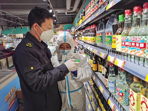 同時,市委政法委、市場監(jiān)督管理局、商務(wù)局和各社區(qū)在確保疫情防控、食品安全、供貨配送的前提下,在現(xiàn)有生活物資供應(yīng)渠道基礎(chǔ)上,再增加小區(qū)保供商店數(shù)量,保障居民基本生活物資供給。”同時,滿洲里市市場監(jiān)督管理局始終將食品安全工作擺在重要位置,持續(xù)強化監(jiān)督檢查工作,對保供超市、保供商店銷售的商品進行嚴(yán)格檢查,確保群眾吃得安心、吃得放心。(記者 陳功利)