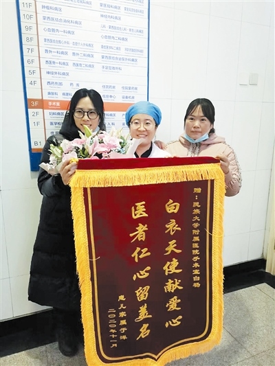 11月27日,當(dāng)孩子已經(jīng)好轉(zhuǎn)出院,王欣影沒有忘記那一夜遇到的好心人,她再一次撥通白楊的電話,此時,她才得知白楊就是附屬醫(yī)院手術(shù)室的一名護(hù)士。她將一面寫有“白衣天使獻(xiàn)愛心醫(yī)者仁心留美名”的錦旗送到了白楊的手中,她說:女兒又多了一位媽媽。白楊也向記者講起了那晚的經(jīng)歷,她說:“其實,那晚我是去接我丈夫的,由于暴雪,丈夫被困在了米家科技園附近,我開車去接他,在回來的路上,看到有車輛遇險,心想,這樣惡劣的天氣,遇到誰有困難就應(yīng)該幫一把,當(dāng)時,我們也沒有多想,我也是做母親的,看到夫妻倆那么焦急,我只想把孩子快點送到醫(yī)院,好在有驚無險,孩子平安無事。”后來,記者還了解到,當(dāng)把孩子送到醫(yī)院后,白楊已渾身濕透,待孩子已經(jīng)搶救上,安頓好王欣影后,已經(jīng)是凌晨5點,天也蒙蒙亮了,白楊沒有回家,一夜未眠的她,留在了工作崗位上。