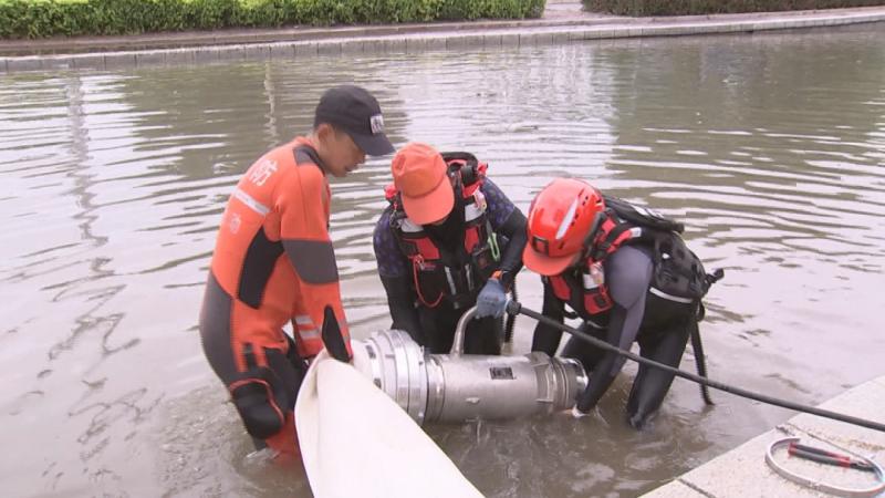 通遼市住建綜合執(zhí)法和森林消防等部門工作人員合力進行排水作業(yè)