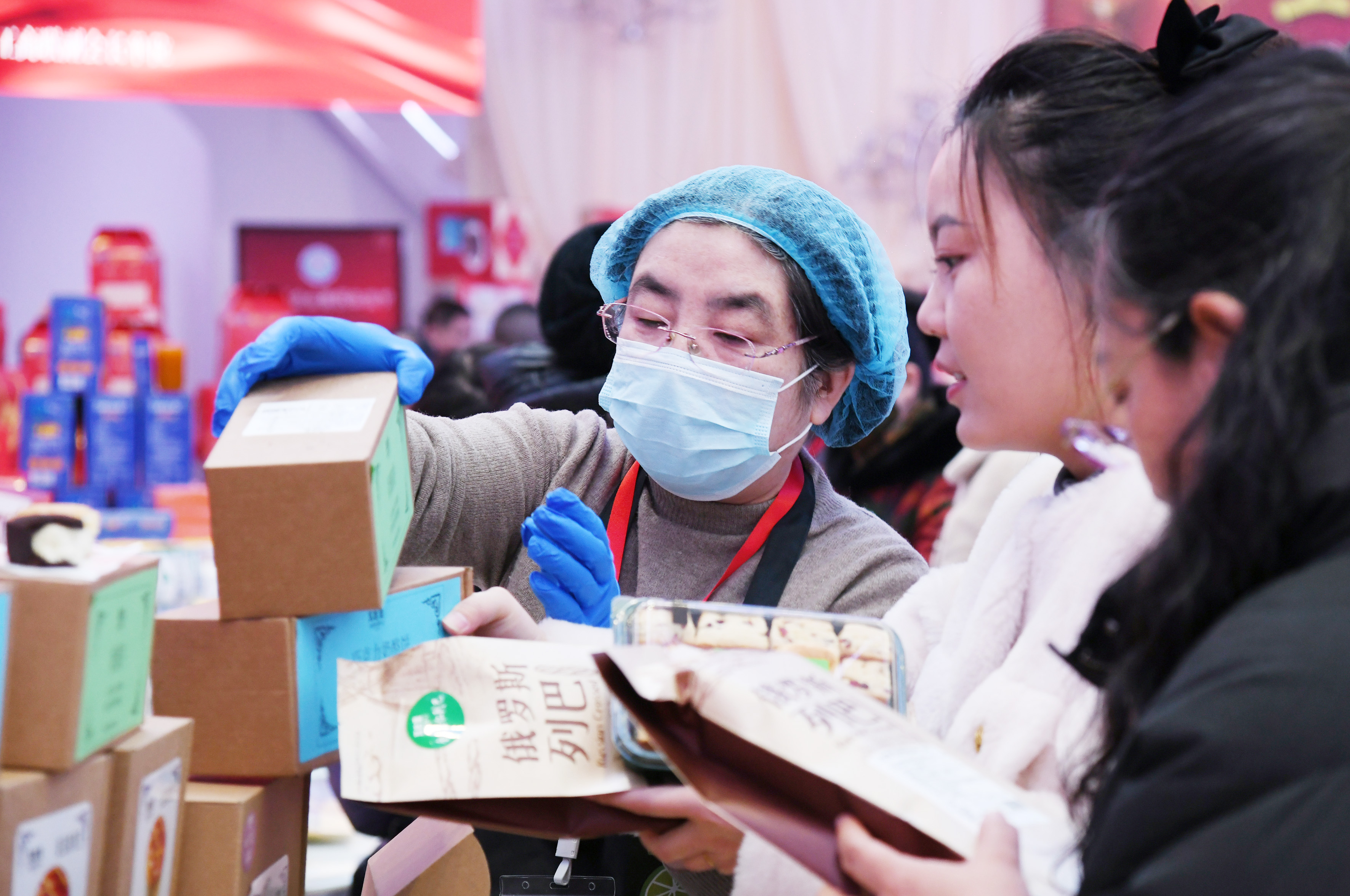 “很開心能參加這次惠民年貨節(jié),我們公司帶來的是自己生產(chǎn)加工的優(yōu)質(zhì)牛羊肉熟食品,還有我們當(dāng)?shù)氐膫鹘y(tǒng)點心,產(chǎn)品均以優(yōu)惠價出售,質(zhì)美價廉,歡迎大家前來品嘗選購?!辈旃柌柯浜吞旄蹏H董事長許永珍說道。