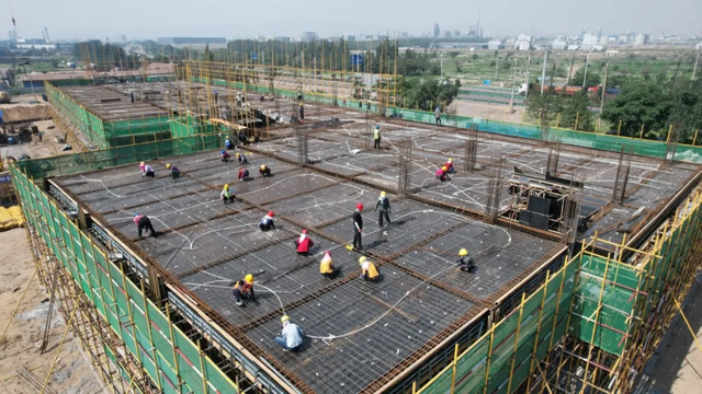 “目前,項目正在進行基礎設施施工,辦公樓已完成1層封頂,1號車間正在進行主體結構的鋼管架的搭設和模板制作,外網(wǎng)工程和2號、3號車間基礎施工也在順利推進?!表椖渴┕挝回撠熑送跣闵礁嬖V記者,該項目計劃今年8月底完成辦公樓、綜合服務樓主體施工,9月中旬完成3個車間主體施工。