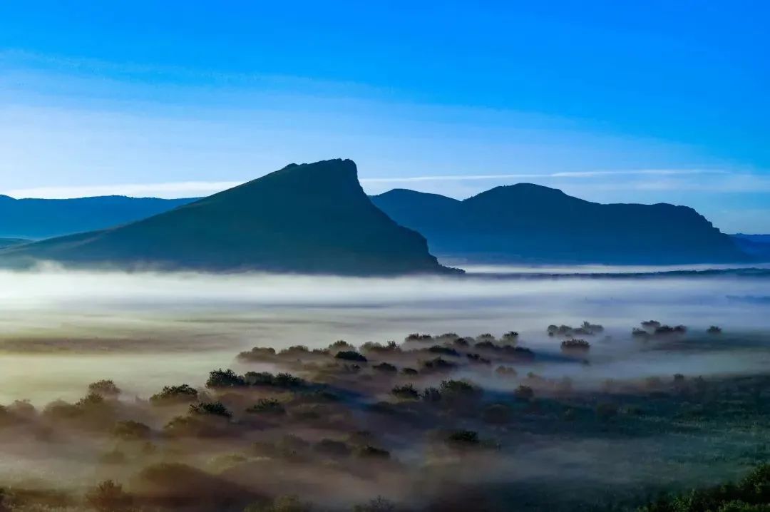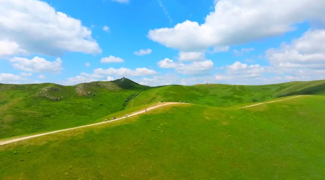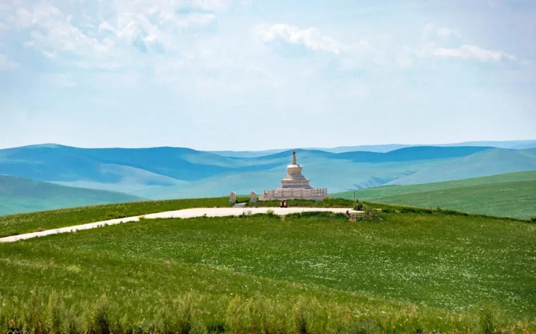 瞭望山上遙望草原,層層山巒望不斷。游客可徒步登山,有寬厚的臺階直通山頂,當你登上最高點,感受四野空曠的幽靜,仿佛真的可以瞭望千里外的風光。