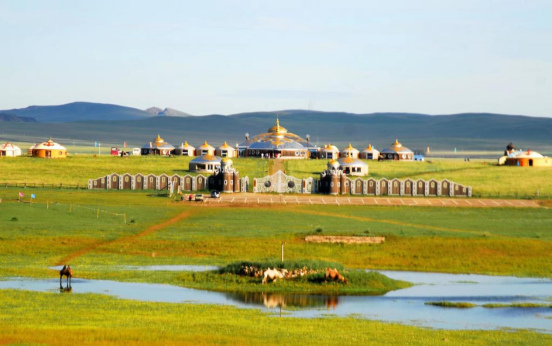 國家AAAA級旅游景區(qū),占地面積達20平方公里,以金頂大帳為中心,由眾多蒙古包群體構成。游客在此能欣賞蒙古族傳統(tǒng)歌舞、馬術表演,參與草原越野、騎馬、射箭等活動,體驗蒙古包住宿,品嘗烤全羊、手把肉等特色蒙餐,感受濃郁的蒙古族風情。