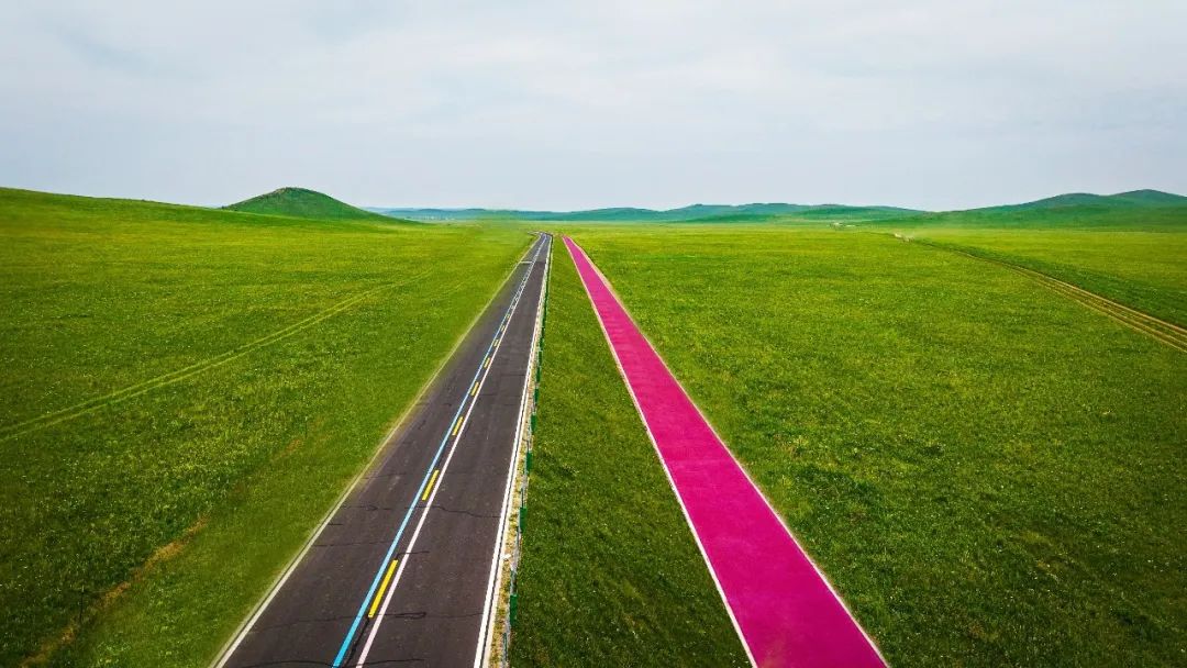 此外,西烏旗草原“99號公路”新增了14.292公里騎行路,鋪就以“烏珠穆沁”音譯內(nèi)涵(摘葡萄的人)為靈感的葡萄紫路面,是騎行愛好者與游客打卡體驗草原風情的絕佳之地。草原“99號公路”起點的心形停車服務區(qū)預計2025年7月投用,發(fā)光Logo項目同步啟動。