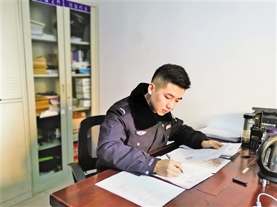 “我當(dāng)人民警察還不到一年,沒想到就趕上了中國人民警察節(jié),太榮幸了。在這里,我祝愿所有的人民警察節(jié)日快樂,平平安安?!?月8日,呼和浩特市新城區(qū)公安分局西街派出所治安民警楊國清激動地說。2020年4月,23歲的楊國清正式成為西街派出所的一名治安民警,出警處警、處理案件成為他的日常工作。入職前,警校畢業(yè)再加上經(jīng)過一段時(shí)間的實(shí)習(xí),楊國清認(rèn)為這些工作應(yīng)該很容易,可當(dāng)他真正走上工作崗位后才發(fā)現(xiàn),并不像自己想象的那么簡單,需要學(xué)習(xí)的地方還很多。在工作中,他總是比別人多付出一份辛苦,不斷學(xué)習(xí),不斷請教,在實(shí)踐中積累經(jīng)驗(yàn),增強(qiáng)業(yè)務(wù)能力?!爱?dāng)作完第一份筆錄,簽上自己名字的那一刻,我才真正感覺到自己肩上的責(zé)任重大。”楊國清告訴記者。除了日常處理案件外,楊國清和搭檔3天值一次班,一值就是24小時(shí)。只要接到報(bào)警,他們會第一時(shí)間趕到現(xiàn)場進(jìn)行處理。打架斗毆、偷盜搶劫、鄰里糾紛……無論是深夜還是凌晨,哪里有警情他們就奔向哪里。警察的工作不僅辛苦還很危險(xiǎn),與家人也聚少離多。當(dāng)記者問到是否后悔選擇這個(gè)職業(yè)時(shí),楊國清堅(jiān)定地說:“我從小的夢想就是當(dāng)一名警察,保護(hù)人民、扶危救困,全力以赴維護(hù)一方平安。每當(dāng)聽到一句感謝的話時(shí),我覺得一切付出都是值得的?!?/p>