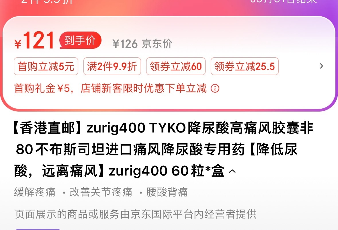 zurig400產品標題宣稱“痛風特效藥”