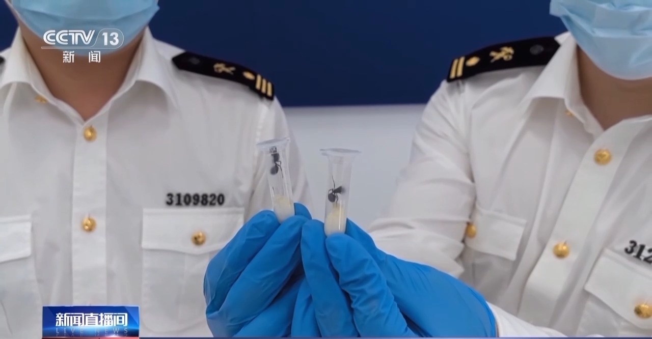 昆明海關(guān)所屬河口海關(guān)行郵一科關(guān)員 楊璨隆:這些螞蟻體型較大,色澤和常規(guī)螞蟻有所不同,而且很有活力,每根管子內(nèi)還裝著用來(lái)保濕的棉花,是異寵的嫌疑很大。
