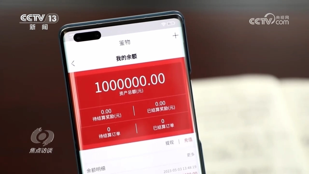 嚴女士:“我看到定金已經(jīng)打到我的‘鑒物’APP賬戶里面了,客服說是不能提現(xiàn)的,要交兩萬塊錢的保證金,就是說我現(xiàn)在打了兩萬塊錢,一家就成了富人,102萬就可以從里面提取出來了。”
