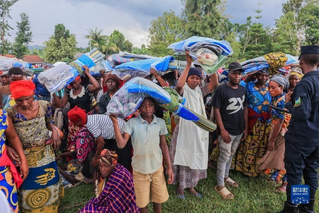 5月4日,災民在盧旺達西方省領取賑災物資。