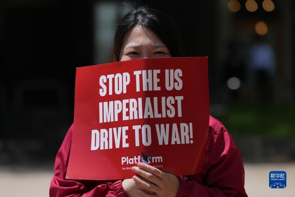 5月21日,民眾聚集在日本廣島袋町公園,抗議七國集團峰會。   新華社記者 張笑宇 攝