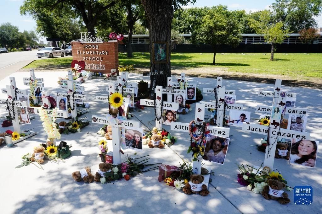 當(dāng)日是美國(guó)尤瓦爾迪大規(guī)模校園槍擊事件一周年。2022年5月24日,19名學(xué)生和2名教師在尤瓦爾迪市羅布小學(xué)槍擊事件中遇難。