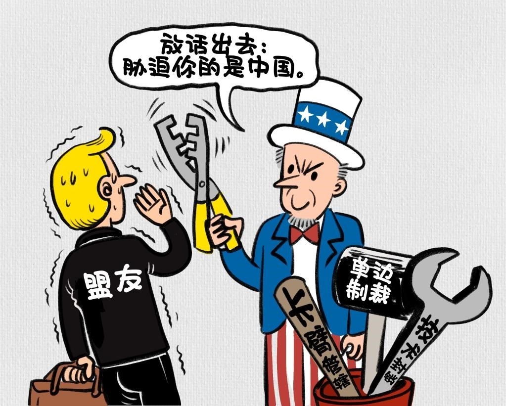 美國智庫新美國安全中心在一份報(bào)告中直言,經(jīng)濟(jì)脅迫措施一直是美國外交政策的工具。倚仗美元霸權(quán),通過切斷其他國家的美元供應(yīng)和交易渠道,限制美元融通渠道、交易匯路等施壓和制裁其他國家;使用包括制裁、限制進(jìn)出口、加征關(guān)稅等各種貿(mào)易管制措施,設(shè)立名目繁多的貿(mào)易管制清單;大搞“長臂管轄”,制定《反海外腐敗法》《敵國貿(mào)易法》等國內(nèi)法直接對特定國家、組織或個人實(shí)施制裁……美國經(jīng)濟(jì)脅迫手段花樣繁多,運(yùn)用純熟。美國用實(shí)際行動向世界表明,自己才是經(jīng)濟(jì)脅迫“集大成者”。