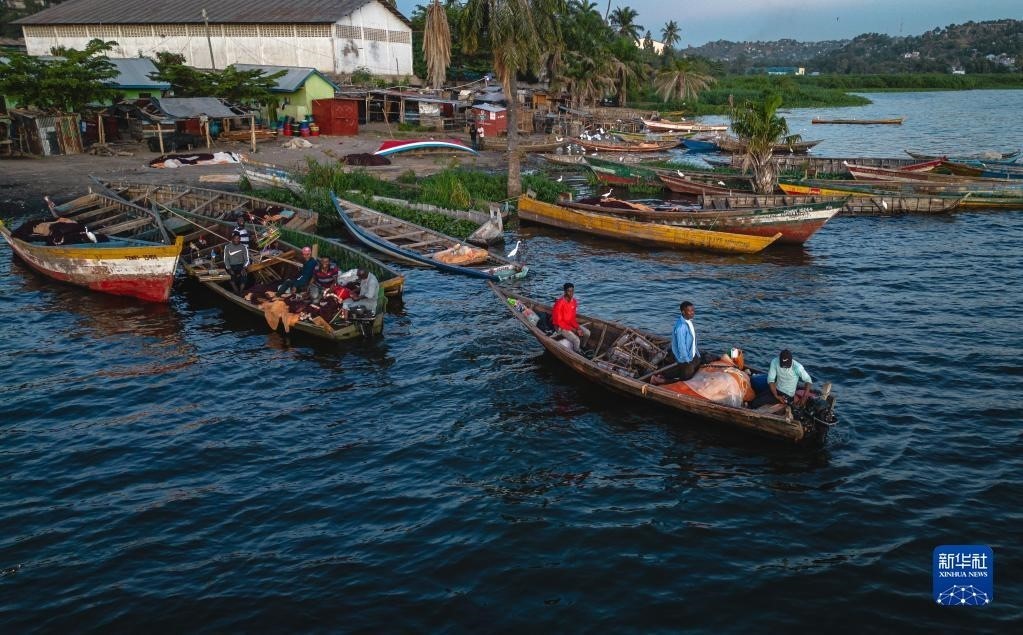 這是6月14日拍攝的坦桑尼亞姆萬扎省維多利亞湖畔的漁船(無人機(jī)照片)。