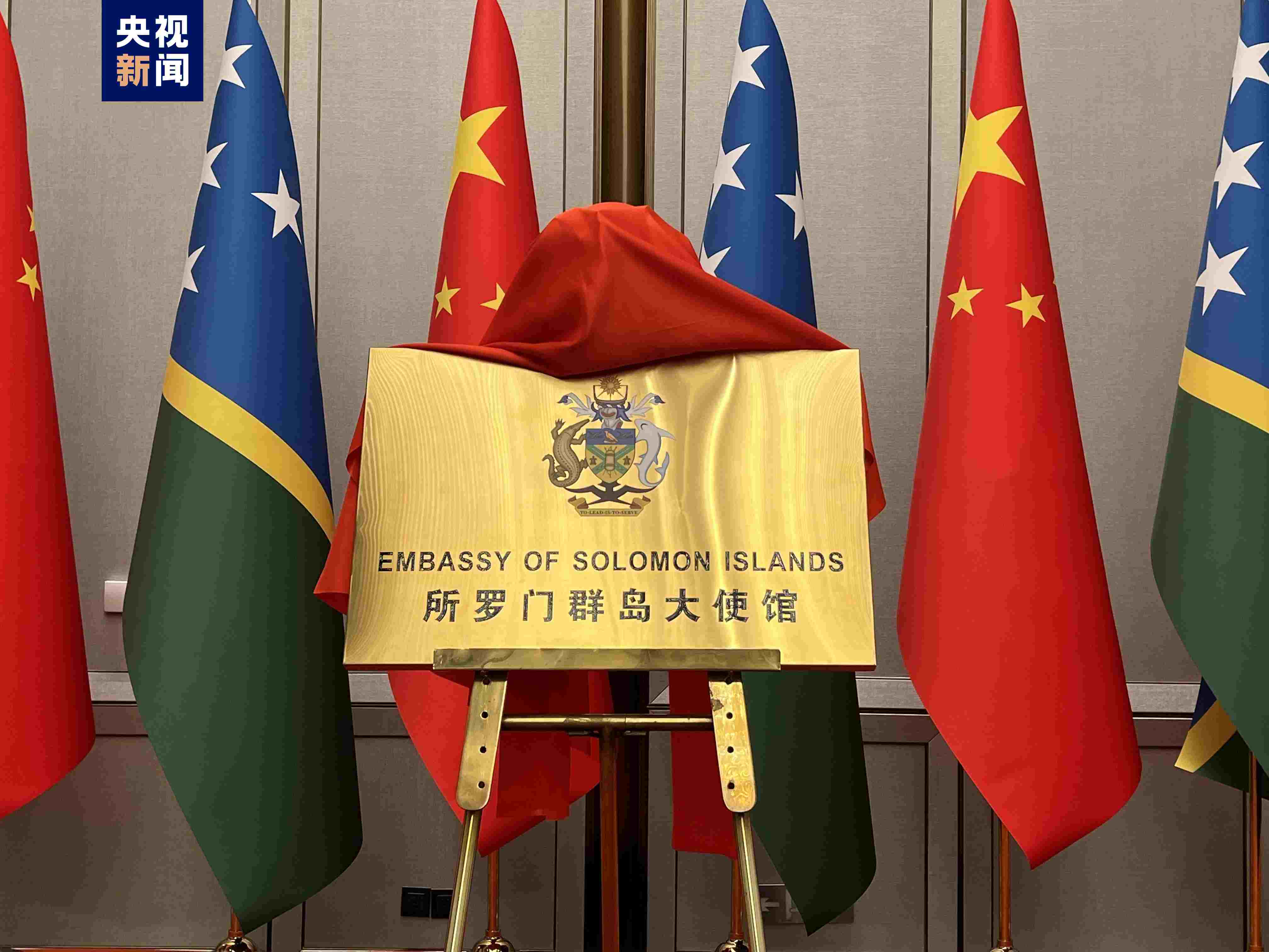 7月11日中午,所羅門群島駐華使館在北京舉行開館儀式。正在中國訪問的所羅門群島總理梅納西·索加瓦雷出席儀式。