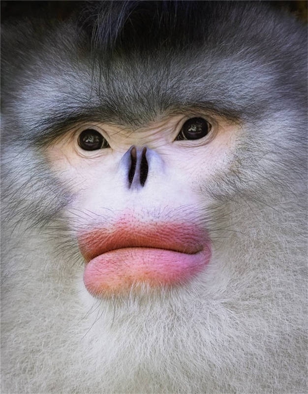 記得我和助手連續(xù)幾天反復(fù)登山,幾周后,我們終于發(fā)現(xiàn)了金絲猴。它們看起來就像做了整容手術(shù),有著大紅唇等獨特的特征。有一天,我順著山路,壓根沒在想金絲猴。突然,我發(fā)現(xiàn)在我腳邊,它正直視著我,我轉(zhuǎn)身按動快門,抓拍到那張近距離的動物肖像。