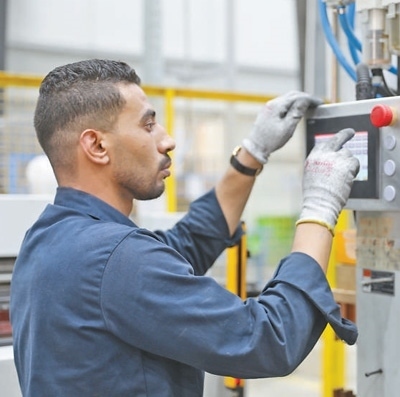 在中?!ぬ┻_(dá)蘇伊士經(jīng)貿(mào)合作區(qū)內(nèi),當(dāng)?shù)毓と嗽诓僮髟O(shè)備。本報記者 張志文攝