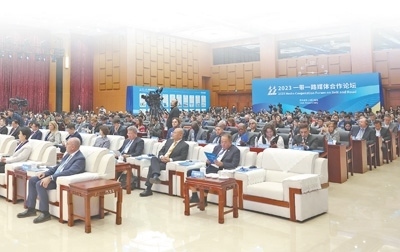 | 2023“一帶一路”媒體合作論壇開(kāi)幕式現(xiàn)場(chǎng)。本報(bào)記者 蔣雨師攝 |
