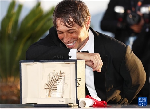 5月25日,在法國(guó)南部城市戛納舉行的第77屆戛納電影節(jié)上,美國(guó)導(dǎo)演肖恩·貝克與“金棕櫚獎(jiǎng)”獎(jiǎng)杯合影留念。新華社記者 高靜 攝