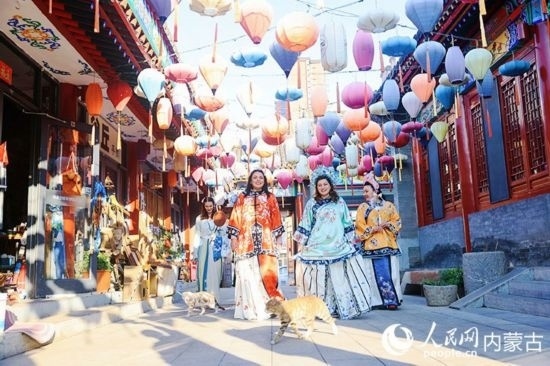 大盛魁博物館整體建筑風(fēng)格為清末民國至上世紀(jì)40年代歸化城(今呼和浩特市)街區(qū)風(fēng)貌。外媒記者“小姐姐”們現(xiàn)場“換裝”,體驗各式中華傳統(tǒng)服飾。來自巴勒斯坦國家電視臺的主持人拉尼婭·哈姆達(dá)拉,換了一身鮮艷的橘色服飾,行走園中,宛若“穿越”時光。