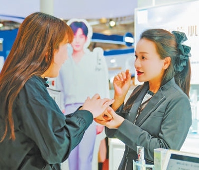 第七屆進(jìn)博會(huì)期間,參觀者在花王展臺(tái)體驗(yàn)相關(guān)產(chǎn)品。