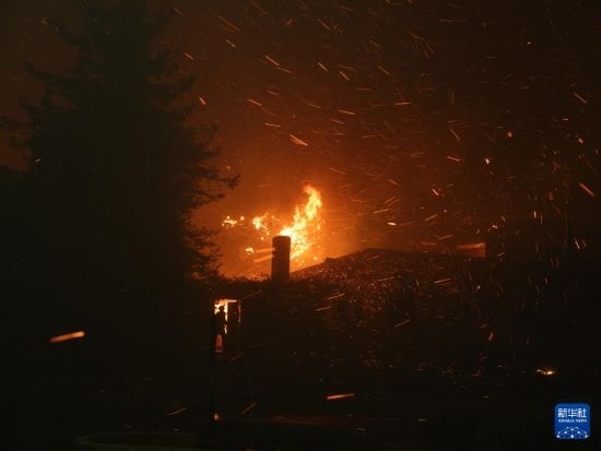 1月7日,在美國加利福尼亞州南部洛杉磯縣沿海社區(qū)帕西菲克帕利塞茲,野火吞噬房屋。