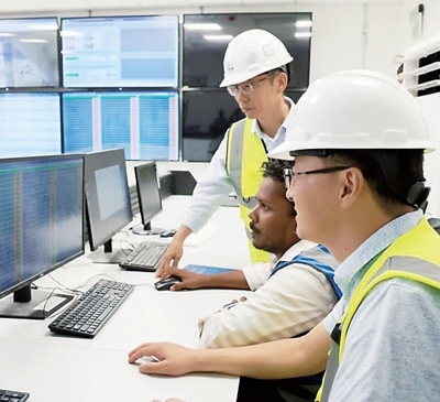工作人員在阿爾舒巴赫光伏電站項目中央控制室查看設(shè)備運行情況。