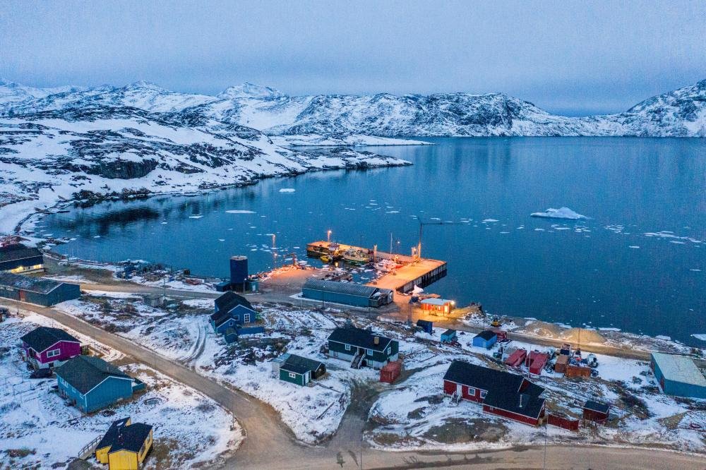 這是3月21日拍攝的丹麥自治領(lǐng)地格陵蘭島納爾薩克鎮(zhèn)的碼頭(無人機(jī)照片)。新華社記者彭子洋攝