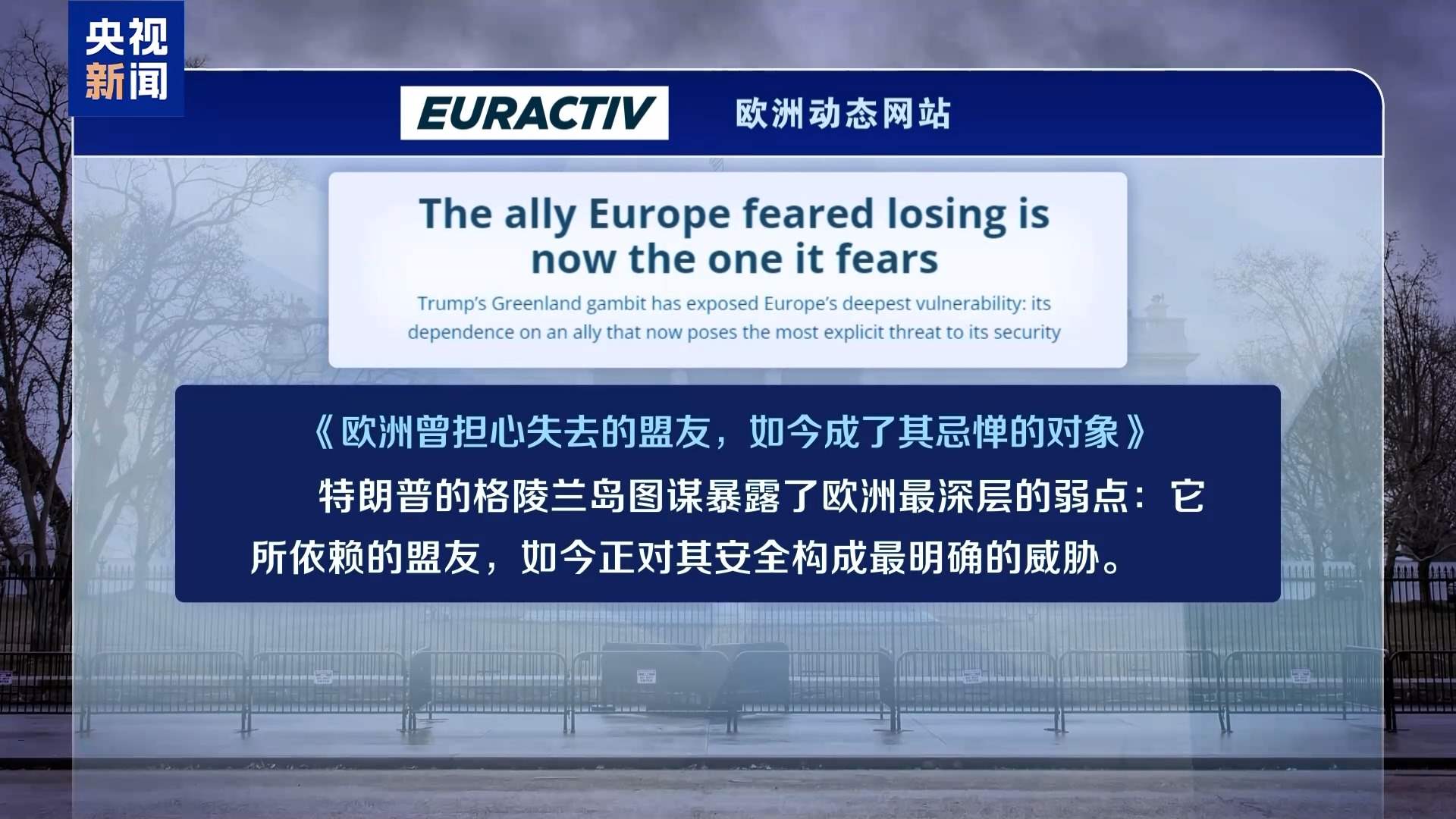 歐洲動態(tài)網(wǎng)站6日以《歐洲曾擔心失去的盟友,如今成了其忌憚的對象》為題評論說,“特朗普的格陵蘭島圖謀暴露了歐洲最深層的弱點:它所依賴的盟友,如今正對其安全構(gòu)成最明確的威脅?!蔽恼逻€提醒說,我們正進入一個“強權即公理”的新世界——而歐洲人對此毫無準備?;蛟S,格陵蘭島可能帶來的羞辱,將促使歐洲人反思這一現(xiàn)狀,并最終采取行動改變局面。