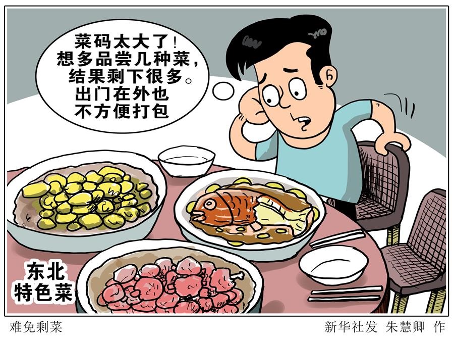 大鐵鍋裝小雞燉蘑菇、豬肉燉粉條,臉盆大小的鋁盆盛裝堆積如小山的主食……在東北,有很多以“大盤菜”“大鍋燉”為特色的餐館?!靶氯A視點”記者在吉林、黑龍江、遼寧三省走訪發(fā)現(xiàn),以“量大實惠”為招牌的東北菜在不少地方很受歡迎,但也存在剩菜多、浪費多的現(xiàn)象。