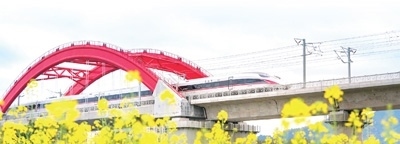 “復(fù)興號(hào)”高鐵列車(chē)在贛深高鐵龍南特大橋疾馳而過(guò)。朱海鵬攝