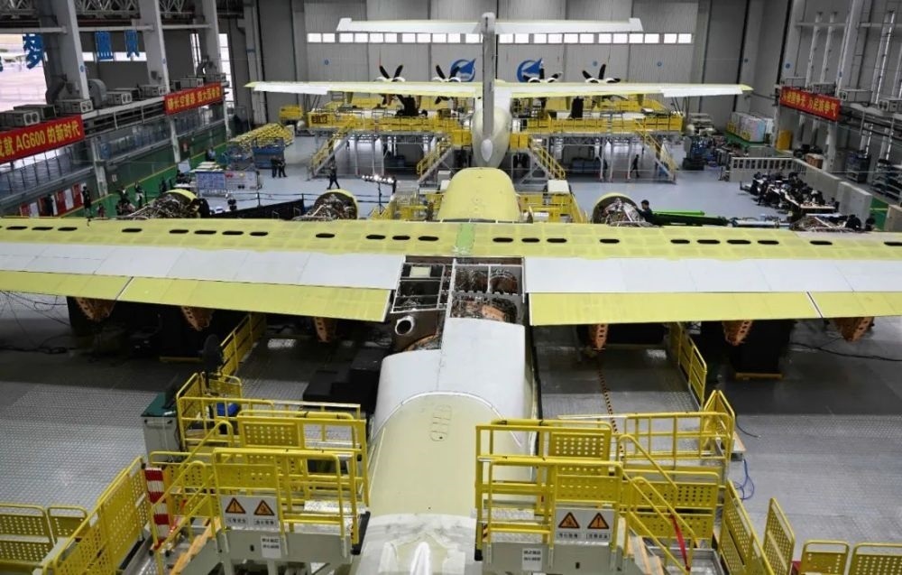 ▲ 在廣東珠海的中航通飛華南飛機工業(yè)有限公司總裝線上,AG600M 正在總裝(2022年11月7日攝)鄧華攝