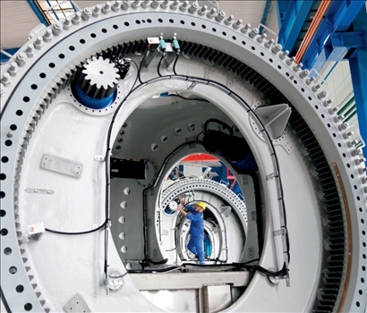 ▲ 在黑龍江省齊齊哈爾市中國一重集團有限公司風(fēng)電裝備生產(chǎn)制造廠生產(chǎn)車間,工人進行生產(chǎn)作業(yè)(2021年7月1日攝) 王建威攝
