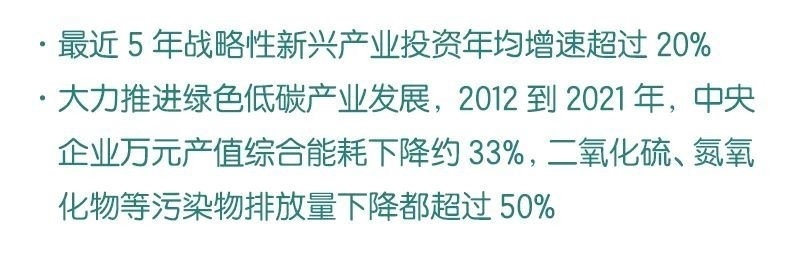 ◆ 截至目前,中央企業(yè)在涉及國家安全和國計民生等領(lǐng)域的營業(yè)收入占比超過70%,最近5年戰(zhàn)略性新興產(chǎn)業(yè)投資年均增速超過20%。