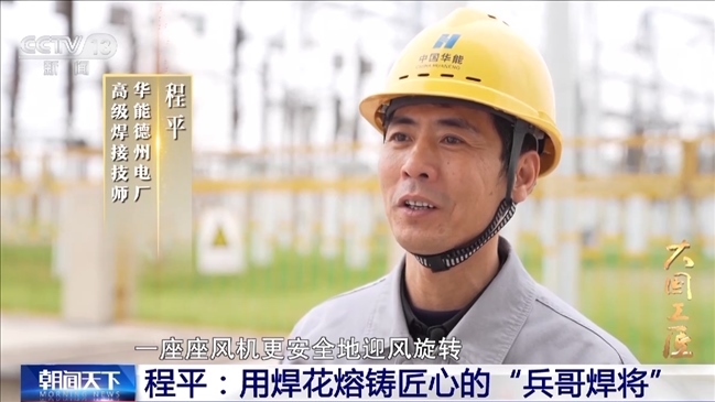 華能德州電廠高級(jí)焊接技師 程平:這十來(lái)年,新能源迎來(lái)了大的發(fā)展,每次看到經(jīng)過(guò)我的手,一座座風(fēng)機(jī)更安全地迎風(fēng)旋轉(zhuǎn),能夠參與新能源的建設(shè),為國(guó)家出一份力,見證它的發(fā)展進(jìn)程,我感到自己非常驕傲也很自豪。