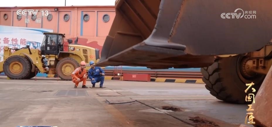 這臺自重30多噸的大型裝載機,輪胎有一人多高。在清艙作業(yè)時,郭凱的視線被鏟斗擋住了,鏟斗和離艙壁的距離,只能靠手感和經(jīng)驗來判斷。而郭凱把裝載機鏟斗和艙壁的距離精確地控制在了1毫米。如果距離大于1毫米,壁上的礦石就難以刮干凈;小于1毫米,就會刮到艙壁。剎車、油門、落大臂、起翻斗,郭凱一連貫動作行云流水、人車合一。