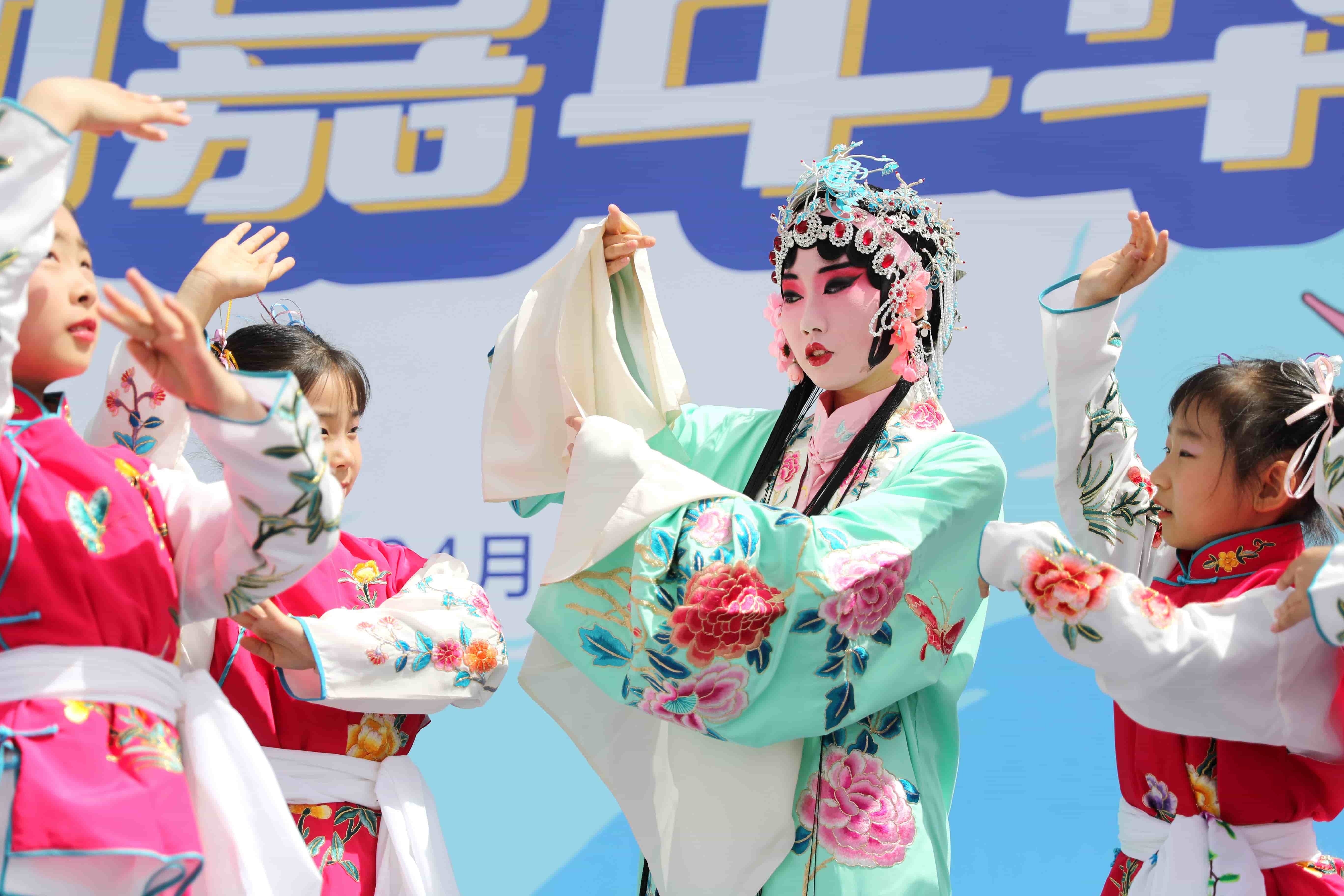 5月3日,小學(xué)生在“五三慘案”紀(jì)念碑前聽志愿者講述歷史。