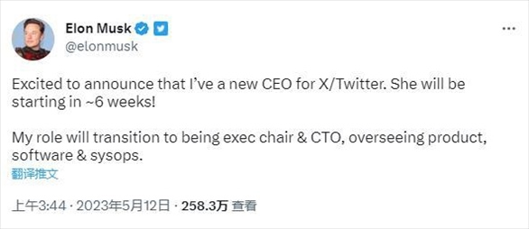 ·馬斯克稱已為推特聘請(qǐng)到接替他的新CEO,并暗示是一位女性。