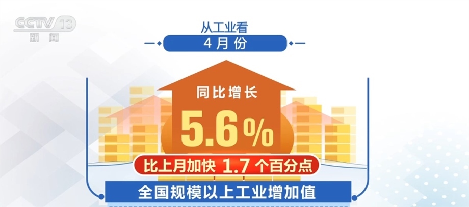 從工業(yè)看,4月份,全國規(guī)模以上工業(yè)增加值同比增長5.6%,比上月加快1.7個百分點(diǎn),其中,新能源汽車、太陽能電池產(chǎn)品產(chǎn)量同比分別增長85.4%和69.1%。