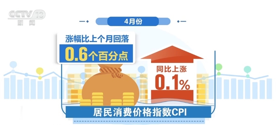 國家統(tǒng)計(jì)局新聞發(fā)言人付凌暉介紹,今年以來,居民消費(fèi)價格指數(shù)也就是CPI同比漲幅總體上是回落的,4月份同比上漲0.1%,漲幅比上個月回落了0.6個百分點(diǎn),CPI走低主要是一些階段性因素影響。