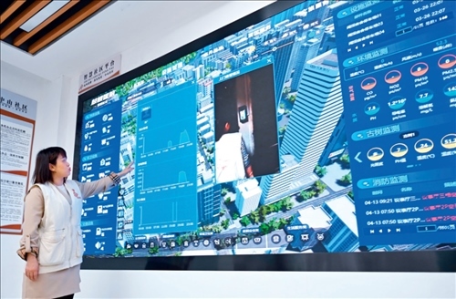 福建省福州市鼓樓區(qū)是國家智能社會治理綜合實驗基地,社區(qū)工作者在鼓樓區(qū)鼓東街道中山社區(qū)介紹“智慧社區(qū)”建設(shè)情況(2023年 4 月 25 日攝) 林善傳攝 / 本刊