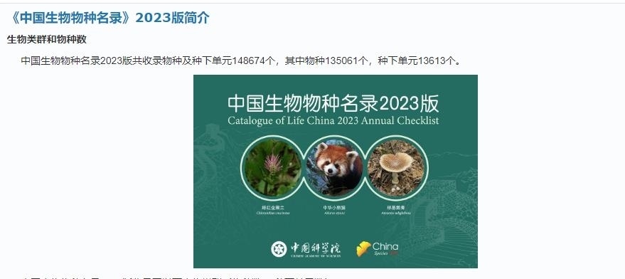 5月22日“國際生物多樣性日”當天,中科院生物多樣性委員會在線發(fā)布了《中國生物物種名錄》2023版。據(jù)“物種2000中國節(jié)點”官網(wǎng)介紹,較2022版,2023版名錄新增10027個物種和354個種下單元。